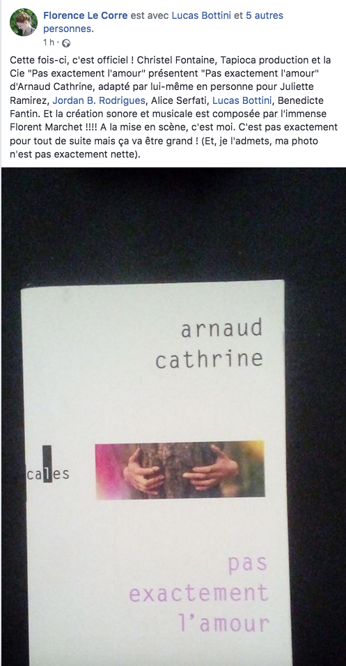 10 Sep Arnaud Cathrine adapte Pas exactement l’amour